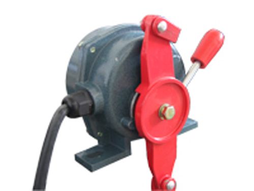 工作原理:當(dāng)膠帶運輸機現(xiàn)場緊急事故時,在沿線任意位置牽動系在掛耳上的鋼絲繩,迫使機內(nèi)凸輪轉(zhuǎn)動而驅(qū)動微機開關(guān)動作,發(fā)出停機信號,達到停機效果,防止事故的擴大。